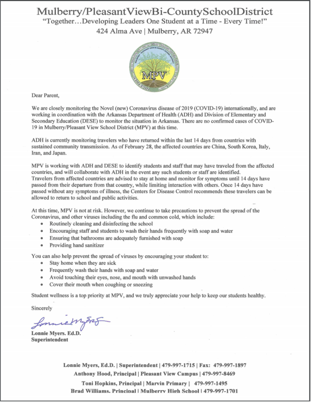 Letter from our Superintendent, Dr. Myers, regarding the Coronavirus