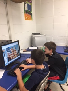 7th Graders: Jake Pritchard, and Dylon Ward work on their 9/11 projects.